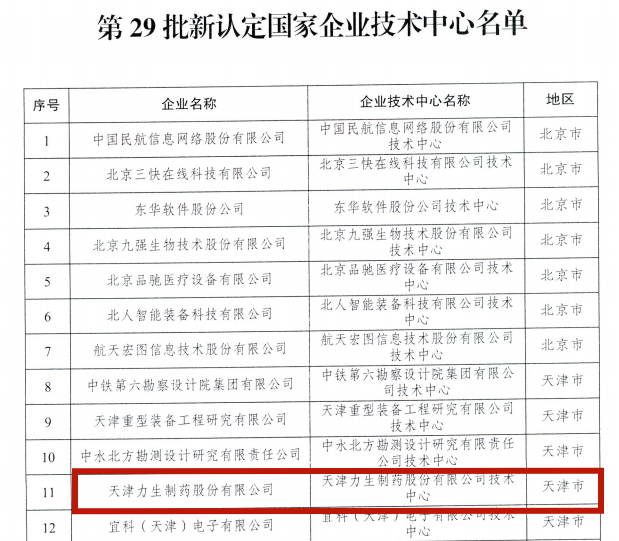 近日,國家發改委發布2022年(第29批)國家企業技術中心擬認定名單,天津力生制藥股份有限公司榮登榜單,也標志著企業在技術創新、科研實力與創新成果等多方面受到了權威認可。
