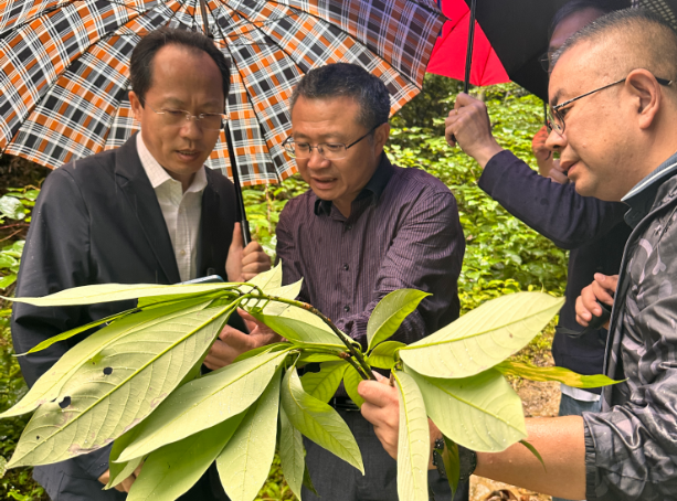 在大崗山年珠實(shí)驗(yàn)林場,張平一行深入紅茴香種植基地,詳細(xì)了解紅茴香的生長環(huán)境及周邊植被生長情況。劉儒詳細(xì)介紹了該區(qū)域的生態(tài)環(huán)境特點(diǎn)。大崗山地區(qū)氣候溫和濕潤,光照充足,土壤肥沃且排水良好,周邊植被豐富多樣,形成了良好的生態(tài)屏障。這些自然條件為紅茴香的生長提供了得天獨(dú)厚的優(yōu)勢,區(qū)域內(nèi)的紅茴香莽草種苗植株健壯,葉片翠綠,根系發(fā)達(dá),展現(xiàn)出良好的生長態(tài)勢。張平對大崗山的生態(tài)環(huán)境表示高度認(rèn)可,認(rèn)為其非常適合良種藥材的生長。